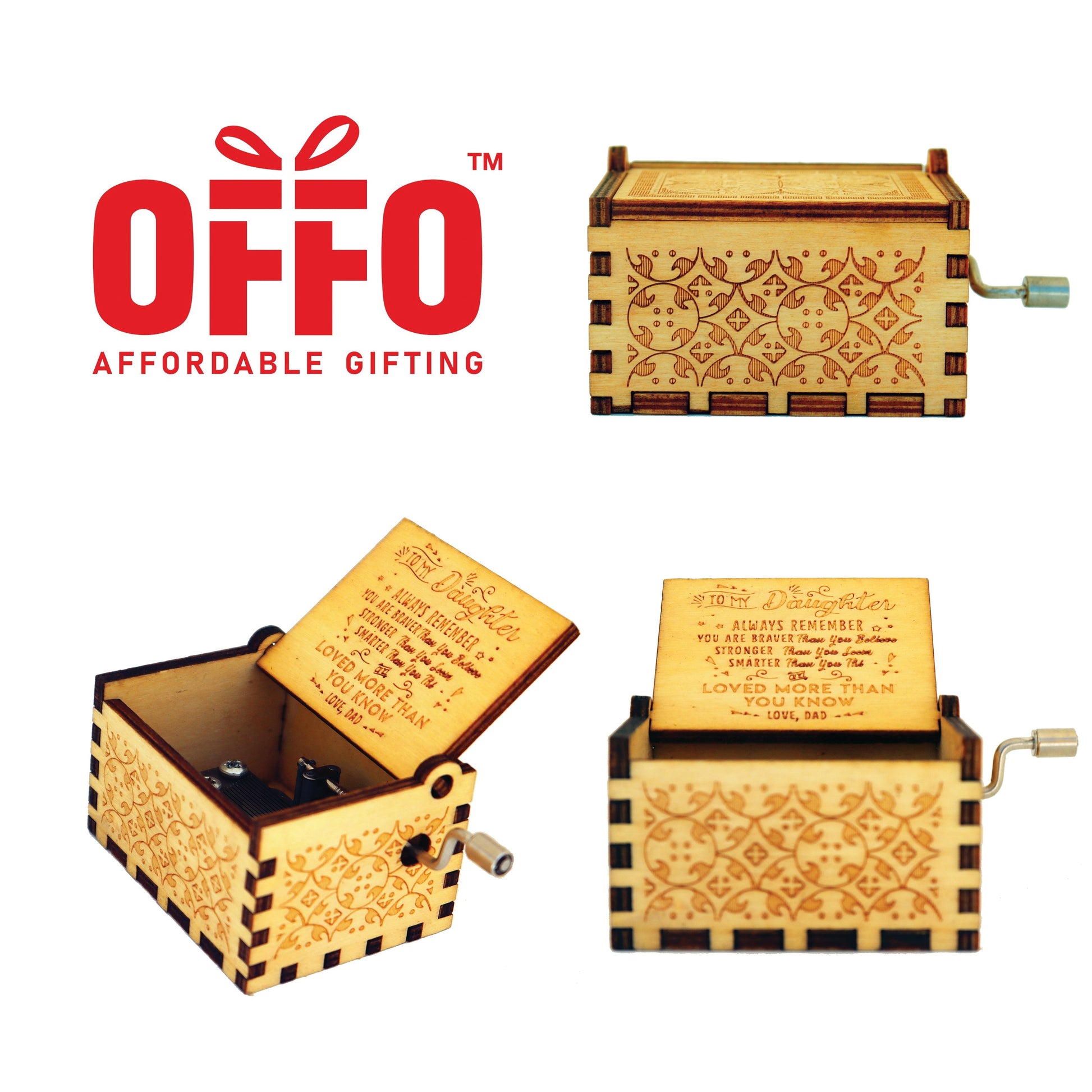 To my Daughter Wooden Hand Cranked Engraved Music Box